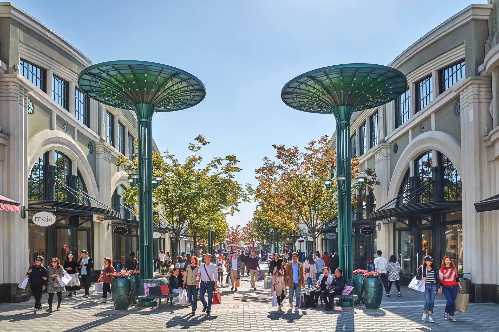 Bicester Village Shanghai features the distinctive Art Deco style that pays tribute the Bund, with the four main pedestrian 'streets' of the village spread out in the shape of a fan.