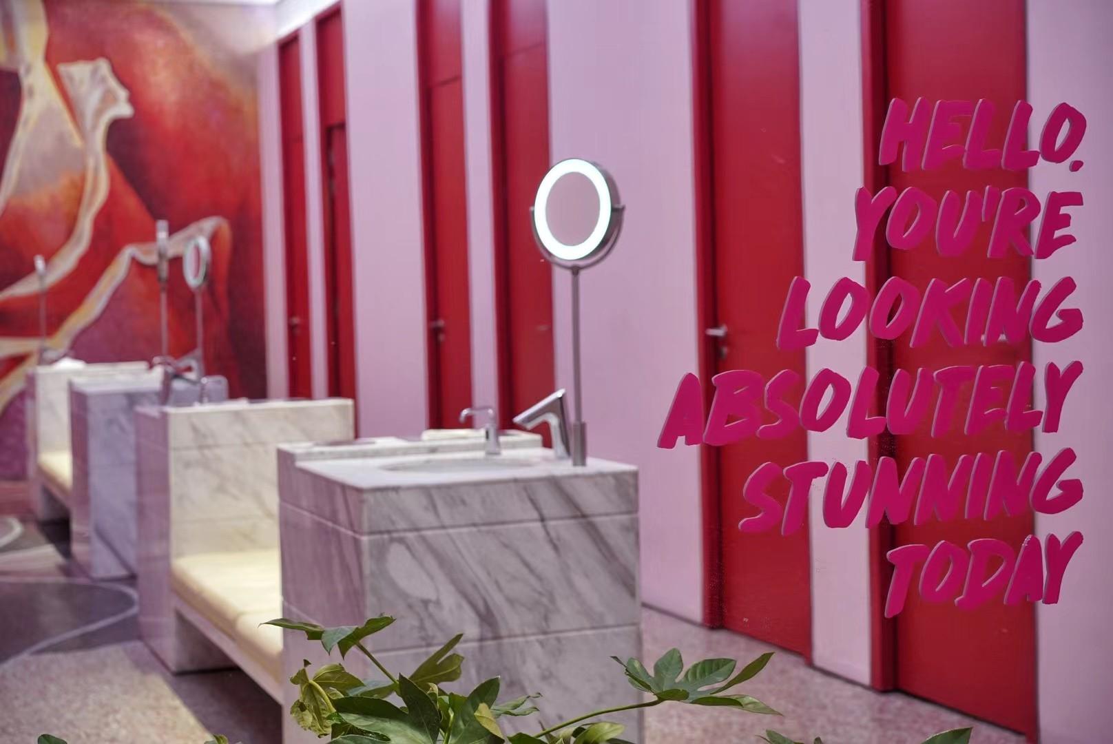The bathrooms are meant to foment a feeling of jumping into a painting itself, an experiential feature that has afforded the space accolades like the award for the Most Beautiful Bathroom by the Shanghai Tourism Board.