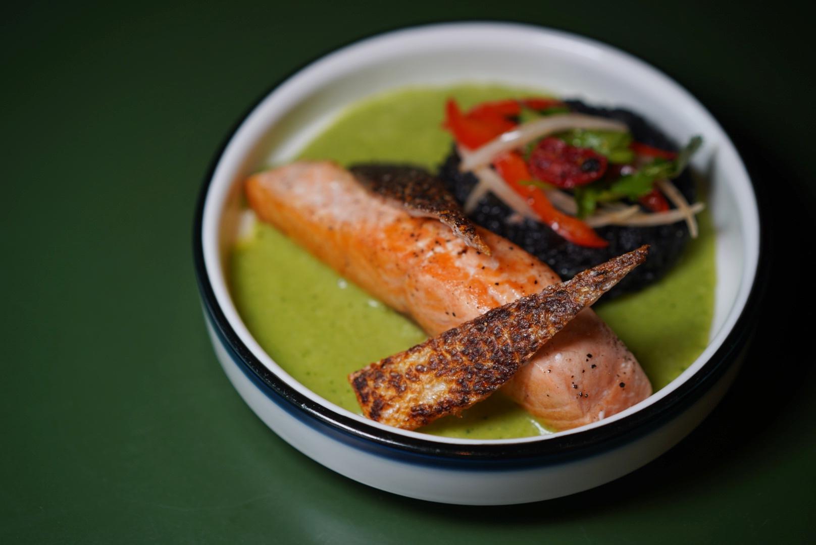 New to the menu, there’s also the plancha-seared Salmon Fillet (RMB128), presented alongside a black squid ink rice patty with a bell pepper salad, asparagus and a fresh and herbaceous cream.