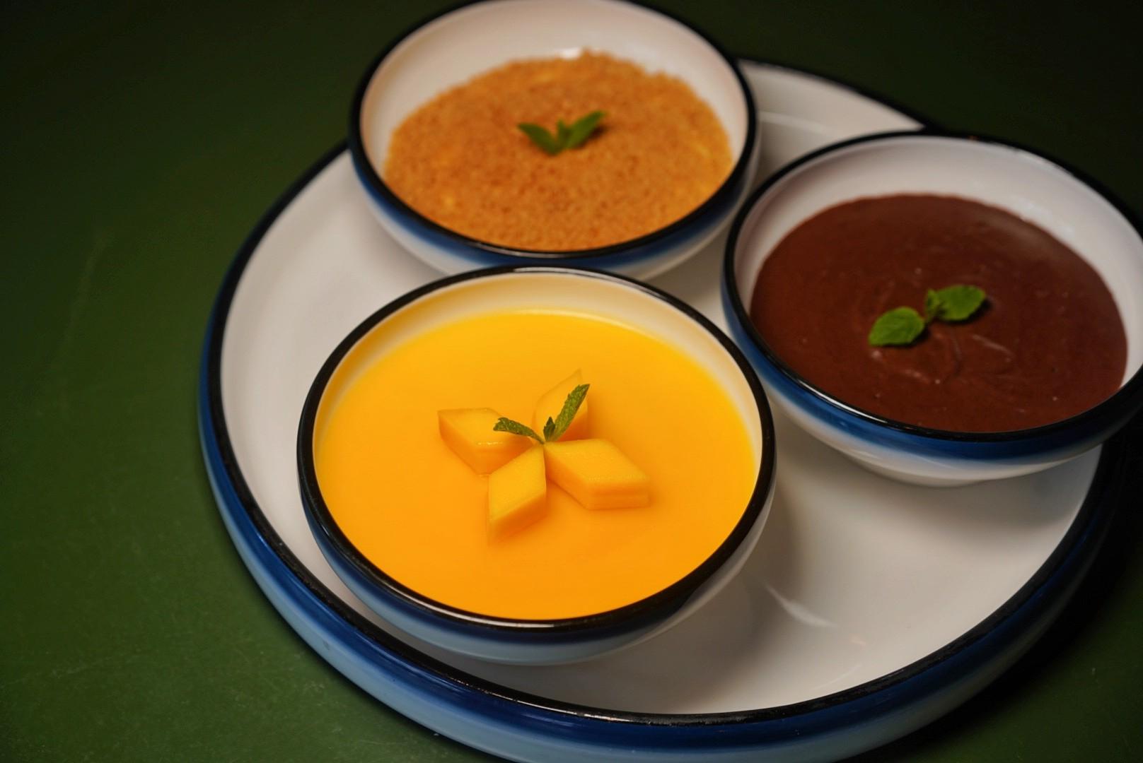… or a trio of typical Portuguese desserts – Chocolate Mousse (RMB35), Serradura (RMB35) – a biscuit mousse pudding – and Mango Mousse (RMB48).