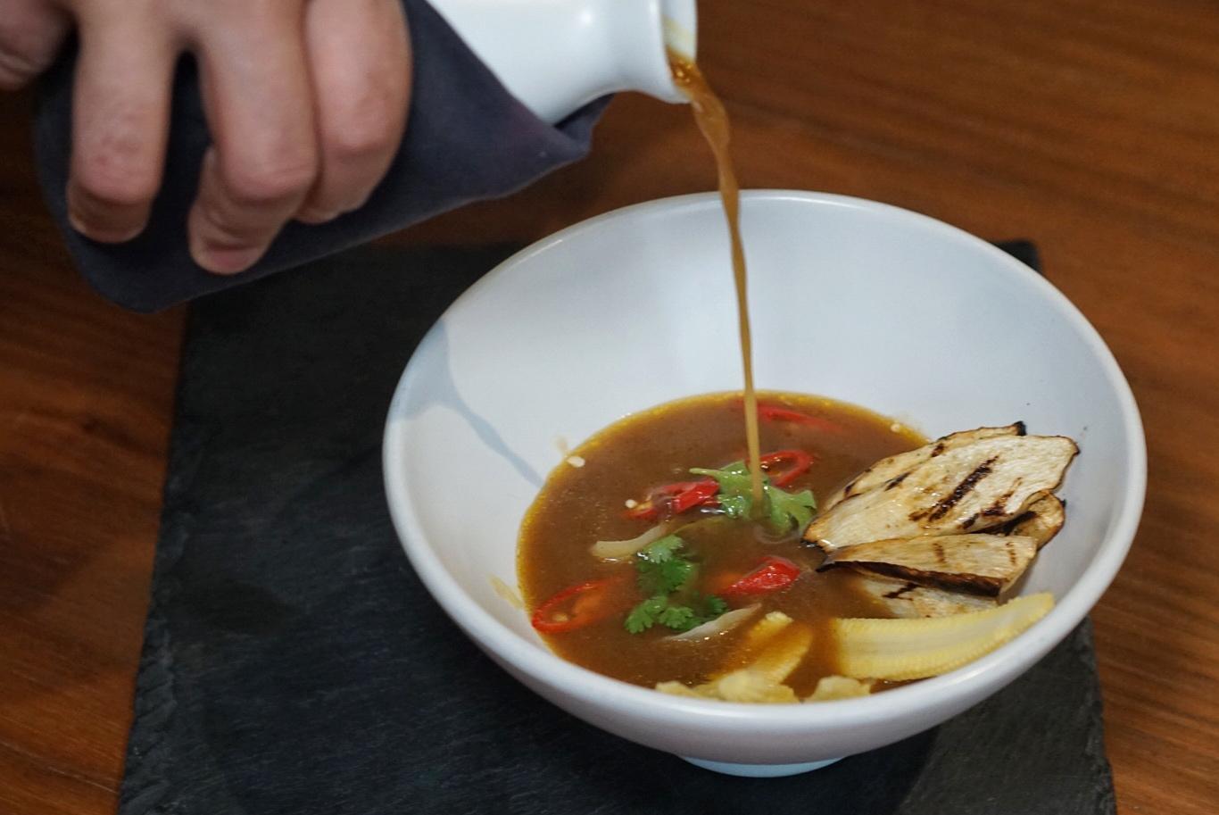 Cooked in a Japanese style beef curry stock that’s been seasoned with spices the chef hand-carried back from Israel, the Sha Cha Beef (RMB78) houses veal cheek dumplings alongside grilled heart of palm, baby corn, and garlic chives.