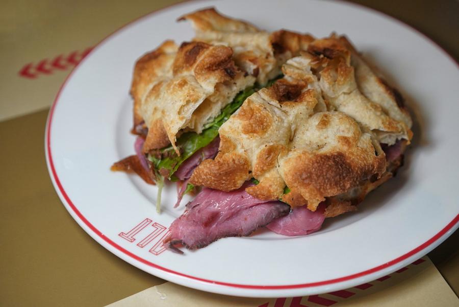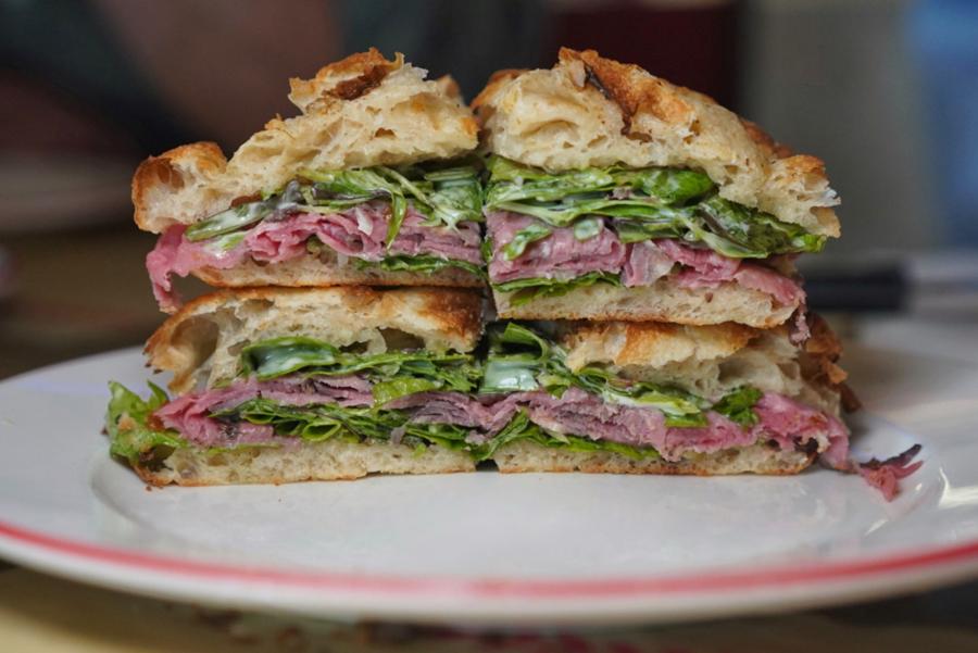 From pillowy donut buns on sandwiches stacked with buffalo mozzarella, candied tomatoes & basil; or melt in your mouth pork, marinated cabbage, mustard mayo and mixed greens; to the juiciest fried chicken with puckering skin pulled taut and a sweet finish of pistachio cream-stuffed bombolone – the entire menu’s eminence transcends its humble, everyday ingredients.