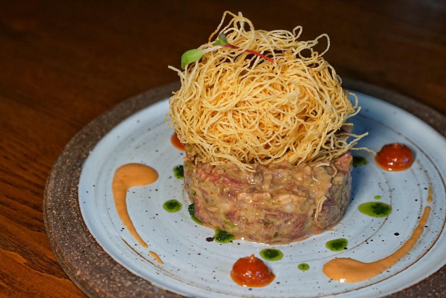 Using a leaner cut of beef, the true flavor of the roughly cut meat comes through in the Beef Tartare (RMB118) without being overpowered by extra fat. Dots of fresh pesto, a tangy homemade ketchup and cocktail sauce shmears decorate the plate, along with a regal crown-like tangle of fried shoe-string potatoes. Mixing everything together with the homemade mayonnaise, mustard and raw onions, this unmistakably French tartare is all about honoring that perfectly luscious meat.