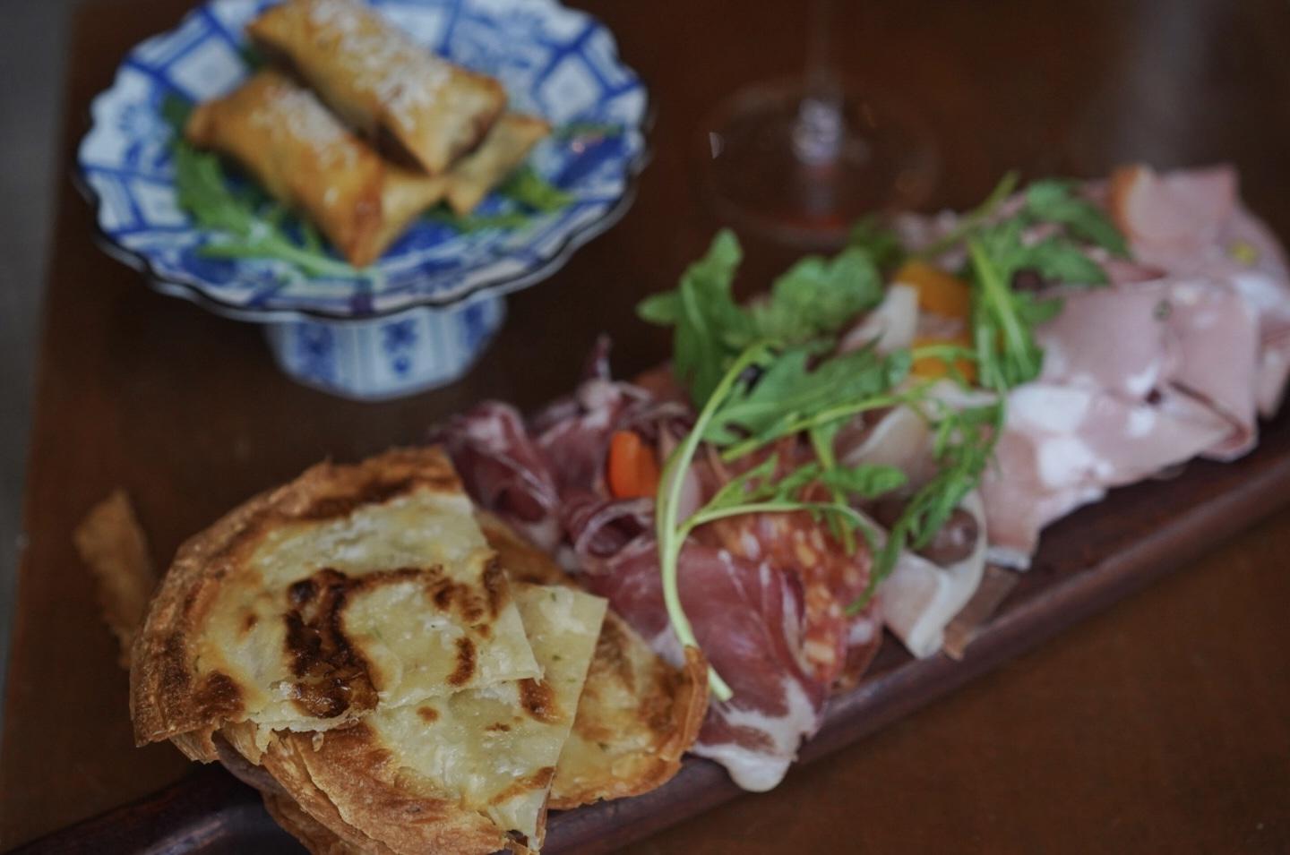 Begin with the Cold Cuts Board (RMB148), Beretta-sourced mortadella, salami, and prosciutto, paired with homemade pickles, olives, and a crispy scallion oil pancake, as opposed to the more conventional bread or biscuit.