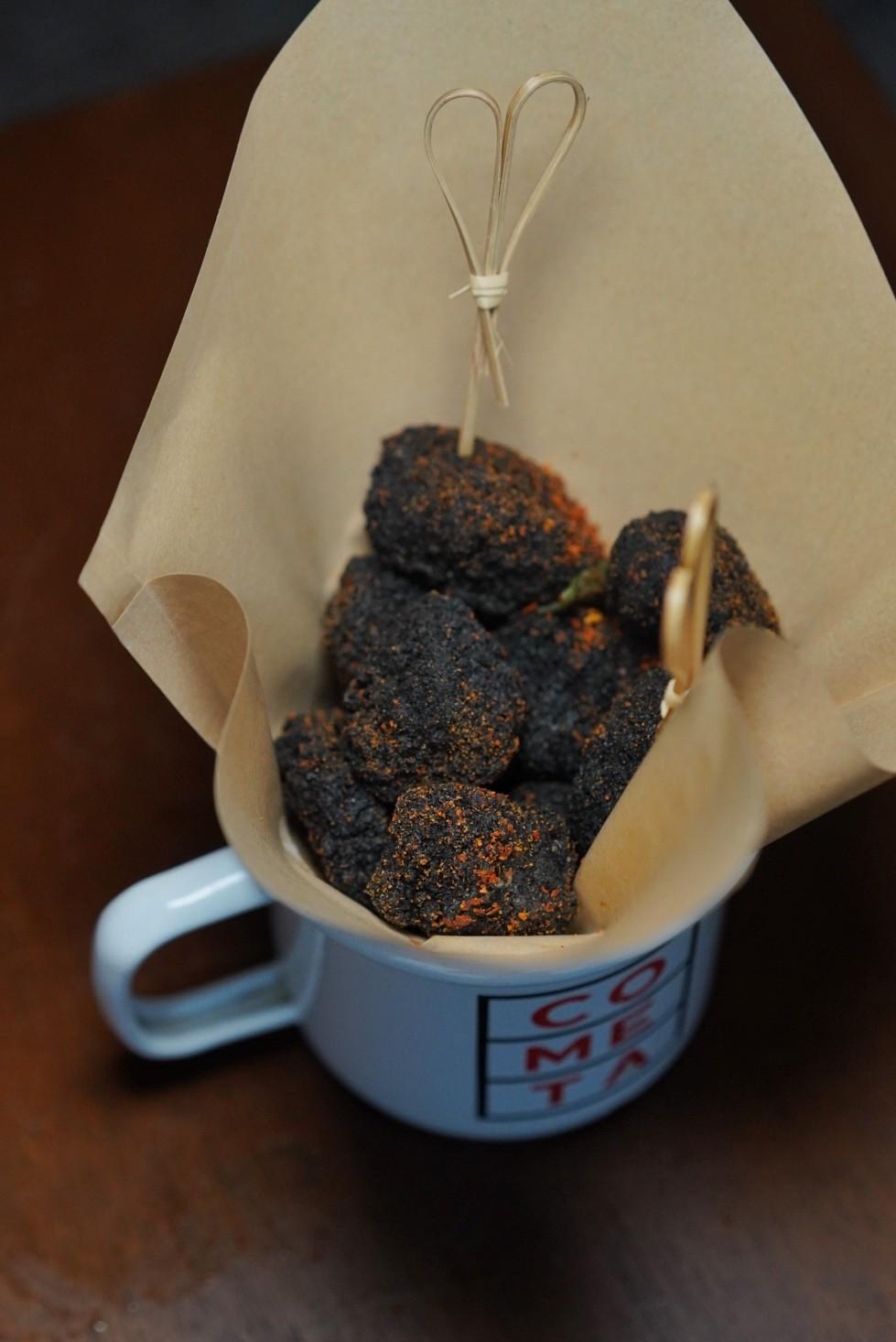 Squid ink is what affords the Spicy Black Chicken Popcorn (RMB68) its onyx hue – juicy morsels of battered and fried chicken, dusted with Sichuan peppercorn.