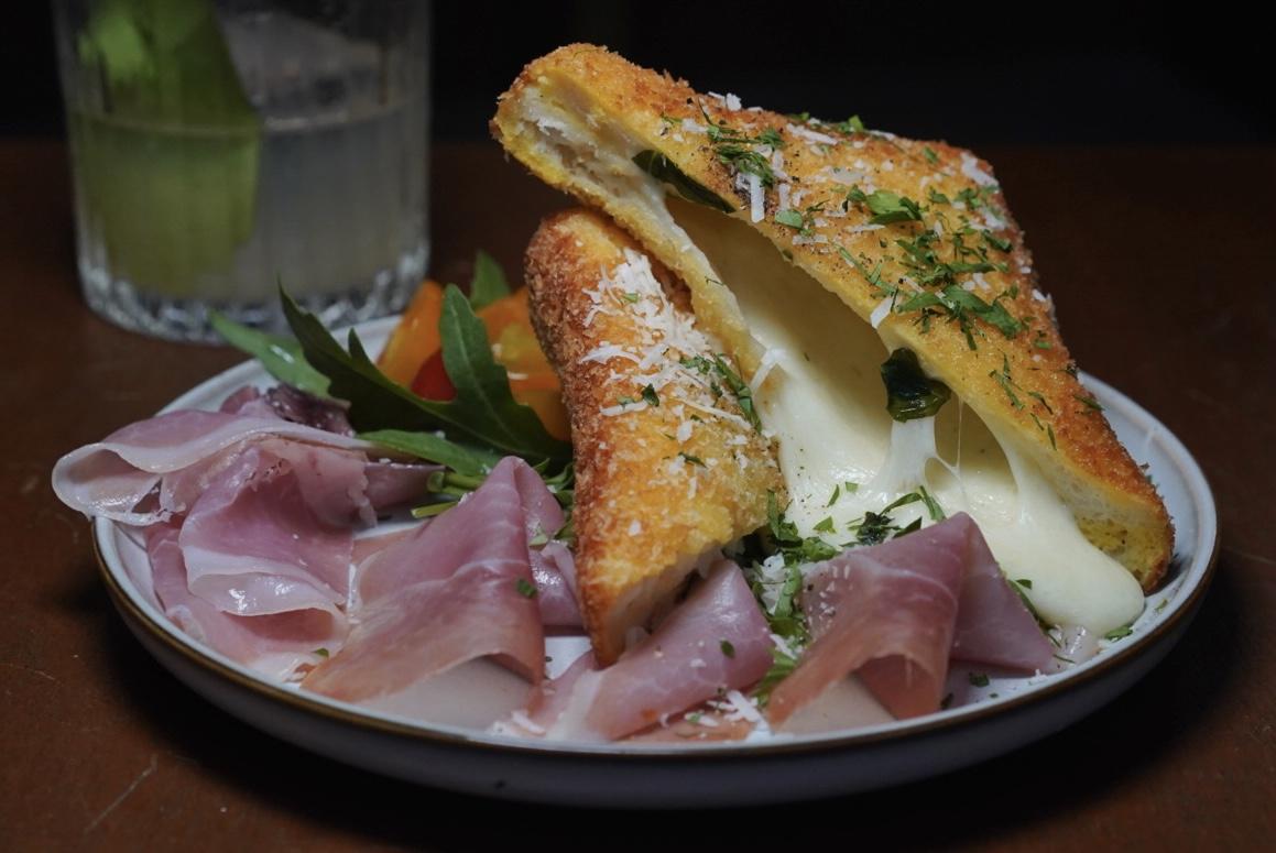 Fried to a crisp golden brown, Rome’s answer to the Croque Monsieur swaps out the ham for pungent anchovies, the umami onslaught tempered by the cheese’s indulgent heft.