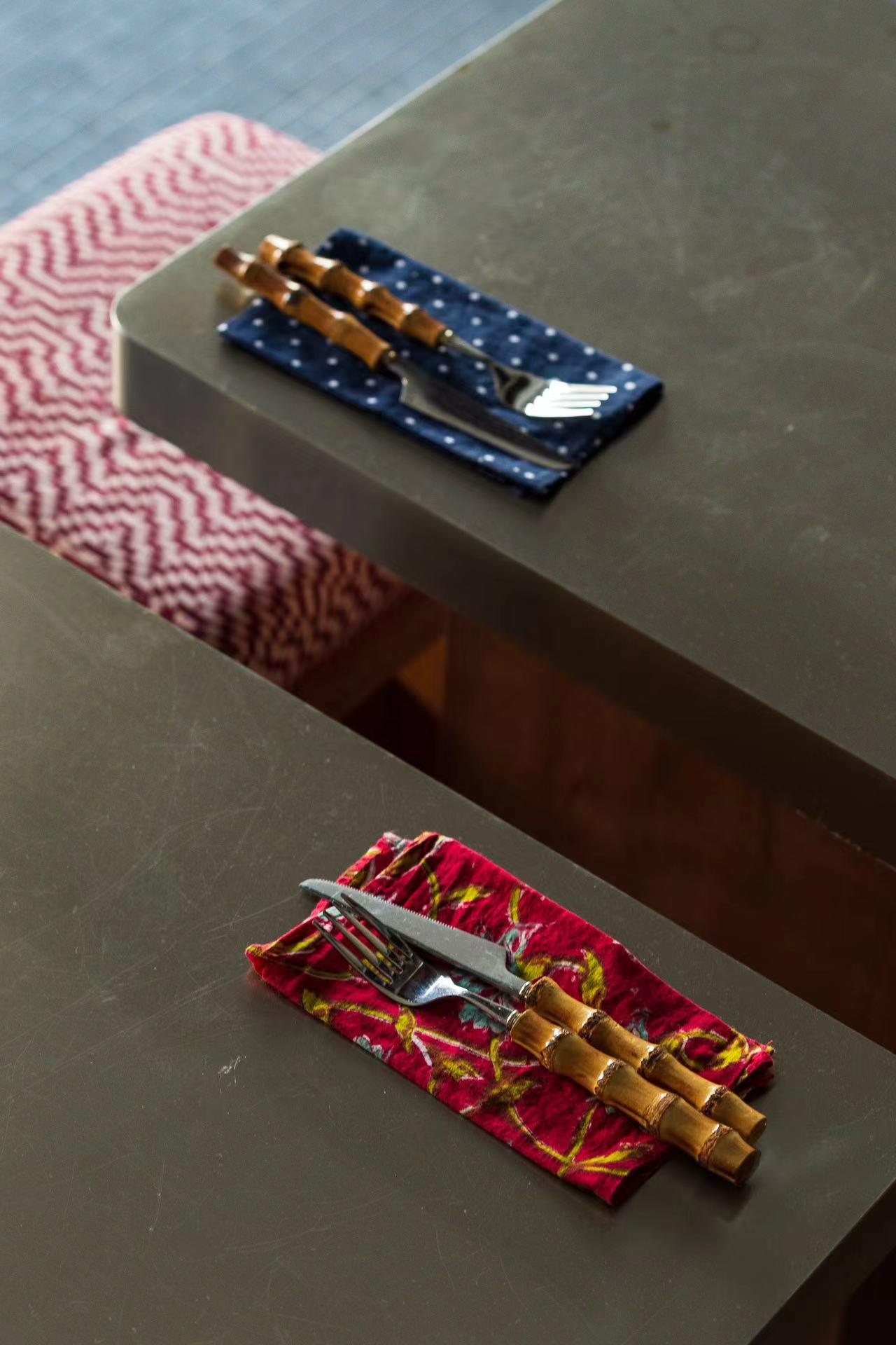 Think patterned cushions of mixed Chinese vintage fabrics, handmade napkins in varying designs, wire lamps that used to provide light to Chinese fishing boats, and Chinese countryside straw-made rain jackets.