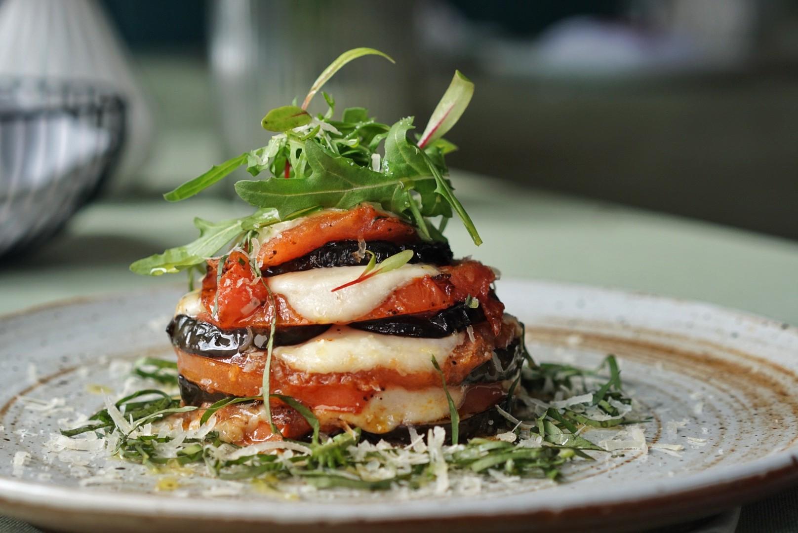 It's particularly obvious in the Eggplant Mozza Mille-Feuilles (RMB88), a stacked tower of breaded and fried eggplant parmesan, tomato and mozzarella. Basil is liberally sprinkled on top.