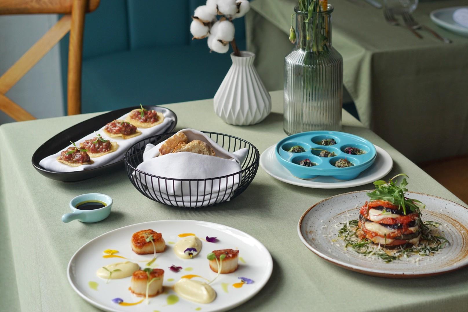 It's particularly obvious in the Eggplant Mozza Mille-Feuilles (RMB88), a stacked tower of breaded and fried eggplant parmesan, tomato and mozzarella. Basil is liberally sprinkled on top.