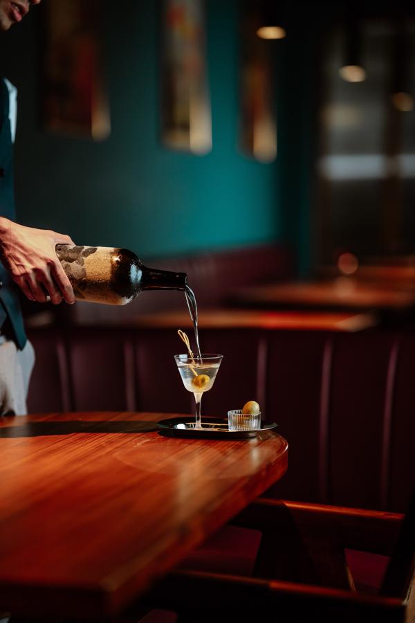 In this ‘curated dive’ tailored to the well-traveled, spirit-forward drinker, “it’s all about personality” remarks Bose, popping a rotund gochujang and cream cheese-stuffed olive in his mouth. “It’s a welcome note scrawled in chalk across your reserved table, a dram and a high five from your bartender ‘just because,’ and friendly banter that makes the experience more memorable than what’s in the glass,” he explains, slurping the quaffable 3 Gin Vesper Martini. This prediluted, frozen blend of elite spirits is poured straight from the frosty bottle, a prime paradigm of the menu: unpretentious cocktails that prioritize smashability over spectacle.