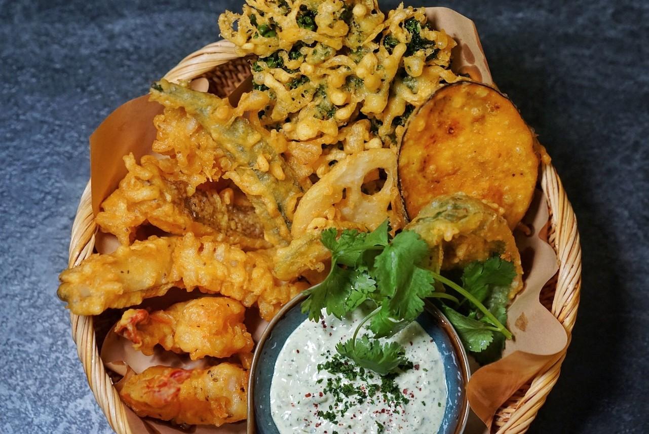 Amritsari Surf n’ Veng Pakodas (RMB98) – Battered squid flowers, flounder, butterfly shrimp, okra, pumpkin, kale, eggplant, pudina tartare sauce