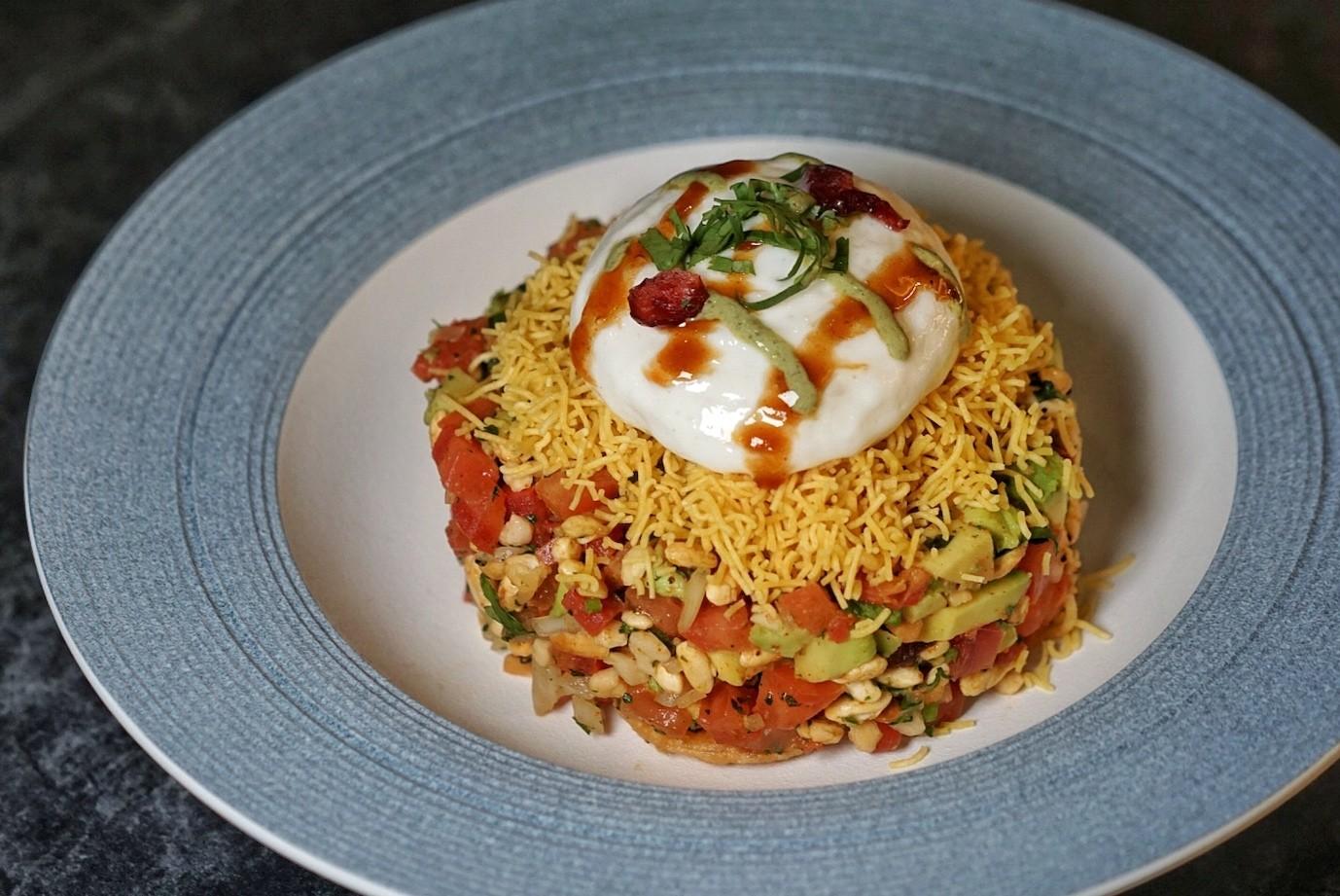 The Papdi Chaat (RMB68) takes a guacamole spin on this other everyday streetsnack. Mexican avocados, tomatoes, coriander, lime juice, pomegranate, house made papdi, chaat masala, and puffed rice are formed into a tartare-like round, topped with a generous dollop of nitro-foamed yogurt espuma.