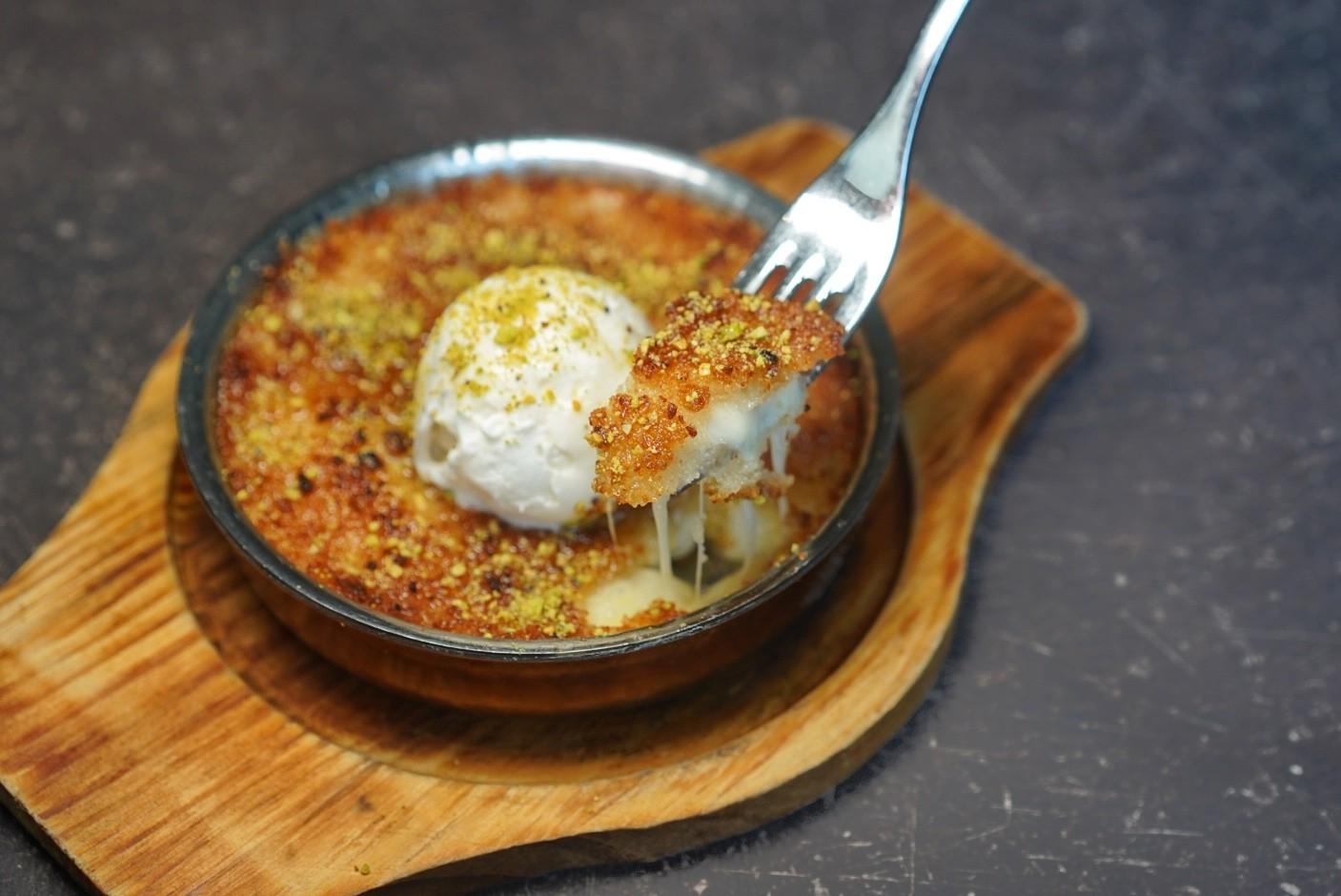 Like crème brûlée meets mozzarella stick, the Knafeh Jibneh (RMB68) sees a blend of shredded filo dough, hearty melty mozzarella cheese mixed with fine semolina and cream, plus a sprinkle of bread crumbs on top.