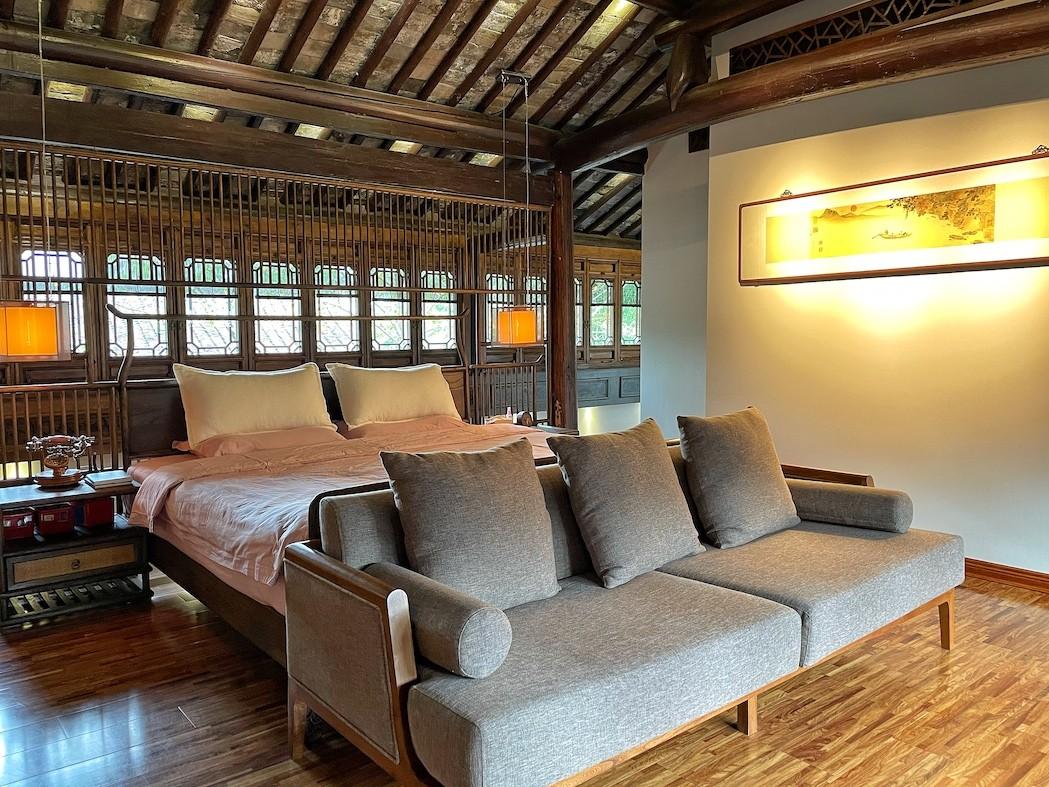 This B&B offers guests three distinct courtyards – as is traditional for dwellings south of the Yangtze River – along with nine guestrooms completely unique in shape, size, layout and design. Each room is also accompanied by its own private tea room and lounge.