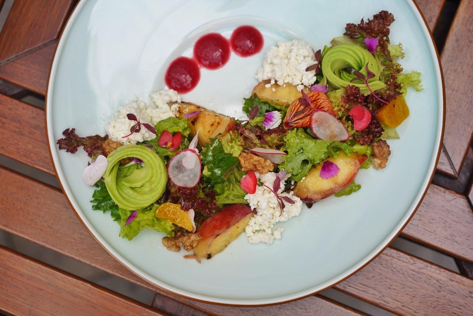 Ensure your daily five servings of fruits and vegetables with the Grilled Peach & Ricotta Salad (RMB98) – a toss of mesclun greens, grilled Wuxi peaches (prized throughout the country for their honey-like sweetness), ricotta cheese, toasted walnuts, radish, and swirling 'roses' of freshly sliced avocado, all tossed in a delicate sherry wine vinaigrette