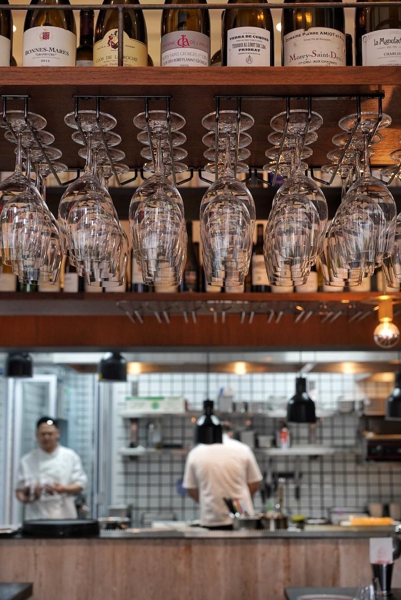 Located in MixC, flanked by other popular Shanghai outlets – Lokal, Fascino, Luneurs, Xibo, and Dairy Queen, to name a few – the Cellar to Table space is bright and inviting with floor to ceiling windows and a central bar with hanging wine glasses that catch the daylight in a luminescent glow.