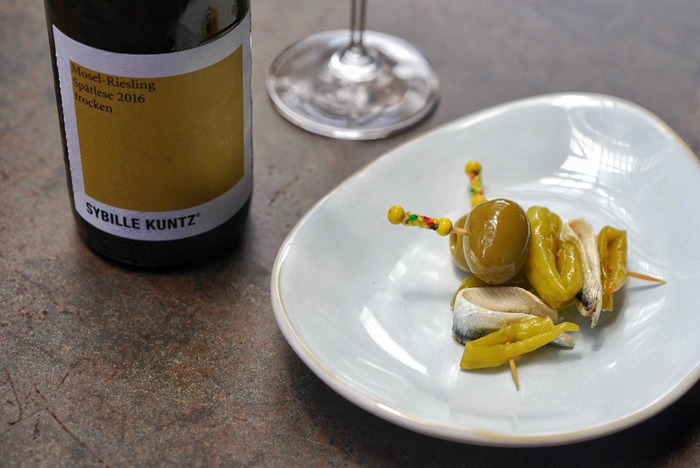 … Gilda (RMB38) – the original pintxo from San Sebastián that helped put the Basque culinary powerhouse on the map with its briny combination of anchovies threaded through green olives and pickled guindilla chili peppers…