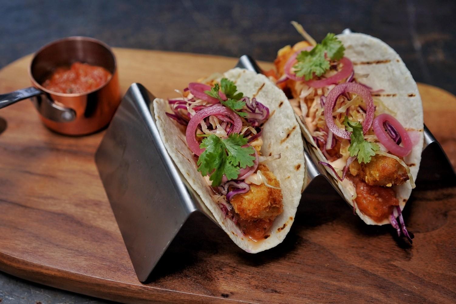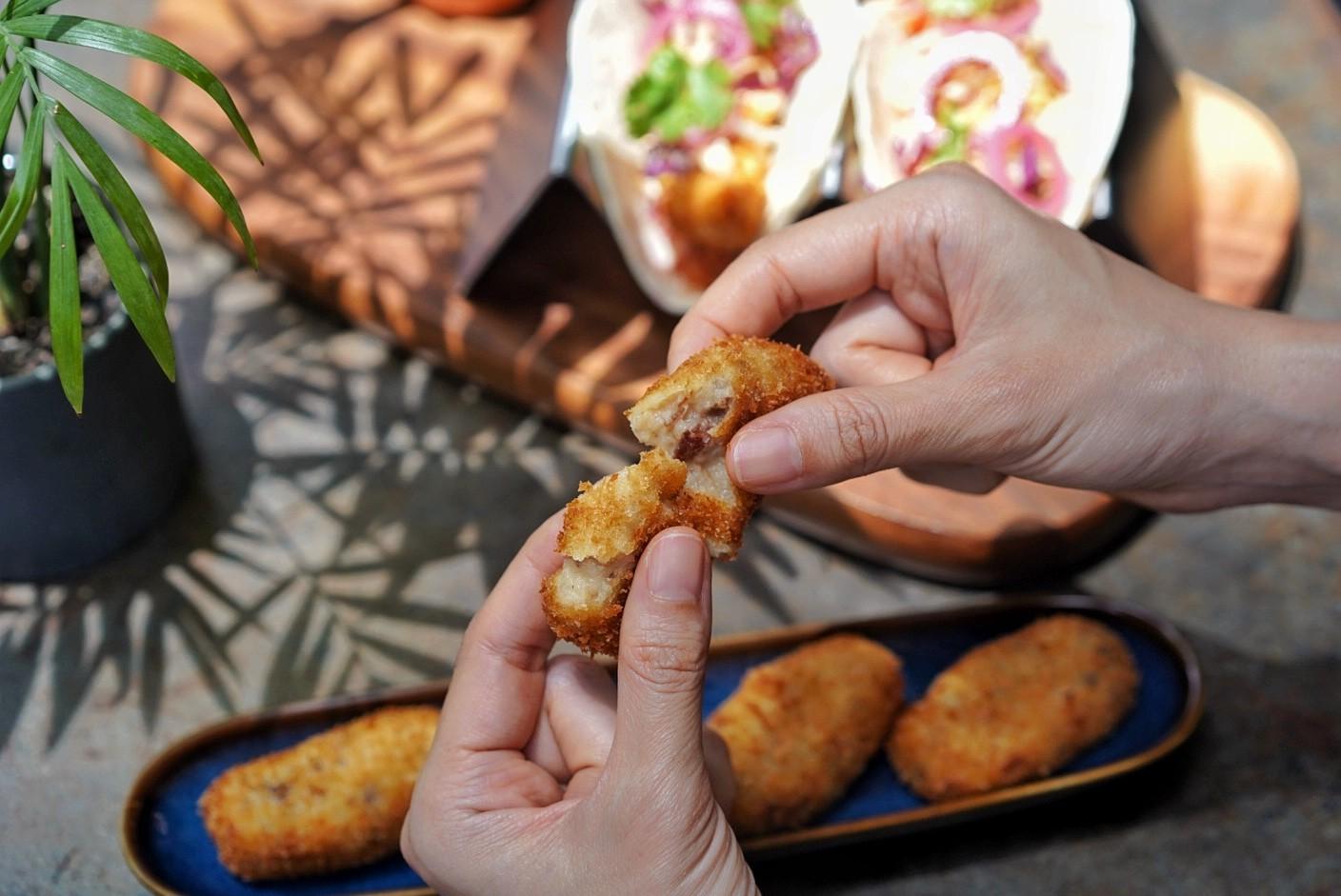Classic Cali-Baja tacos, the Maya’s Tacos (RMB80) see two flour tortillas stuffed with fried green cod, salsa, coleslaw and pickled shallots.