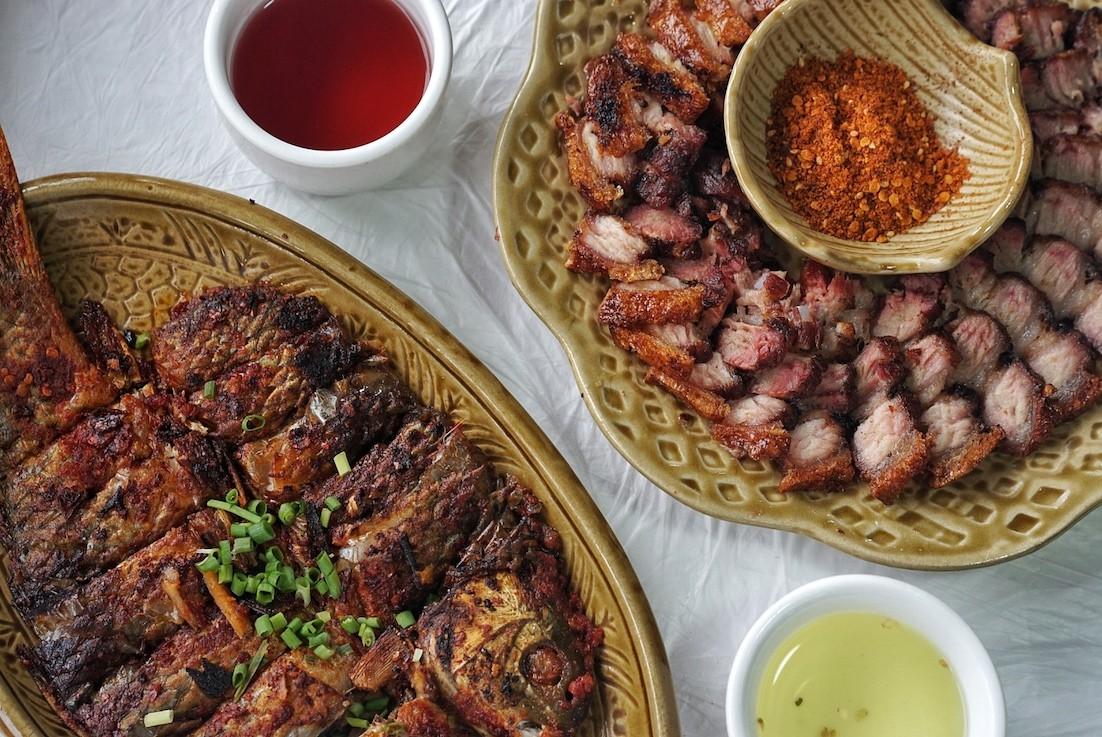 Freshly harvested rice (steamed or fried) serves as the ideal base for soaking up the extra broth that bubbles and thickens into a richer, fish fat-flavored, spiced stew. The complex flavors of this year-round consumed dish are best enjoyed with rice wine, a drinking tradition that is common throughout the entire area.