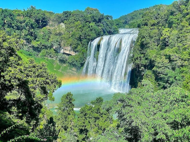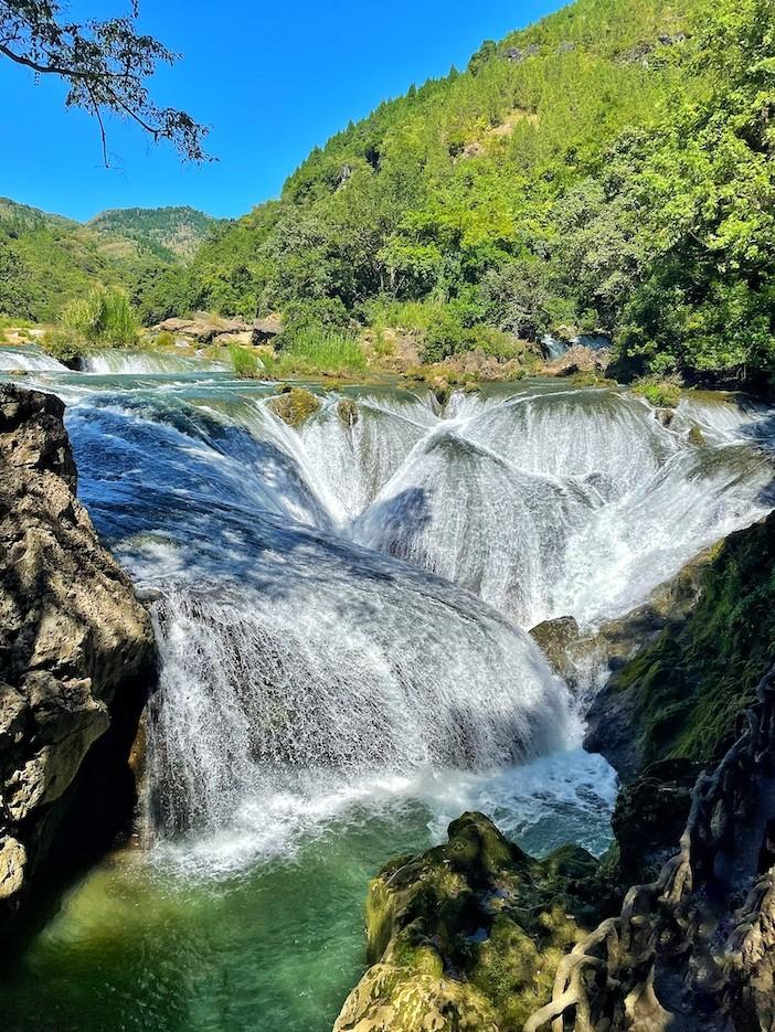 The scenic spot also offers travelers a day’s worth of hiking options in the connecting Doupotang and Tianxinqiao areas, with six viewing platforms, a cluster of 18 additional waterfalls, karst scenery, bonsai gardens and mirror-like lakes.