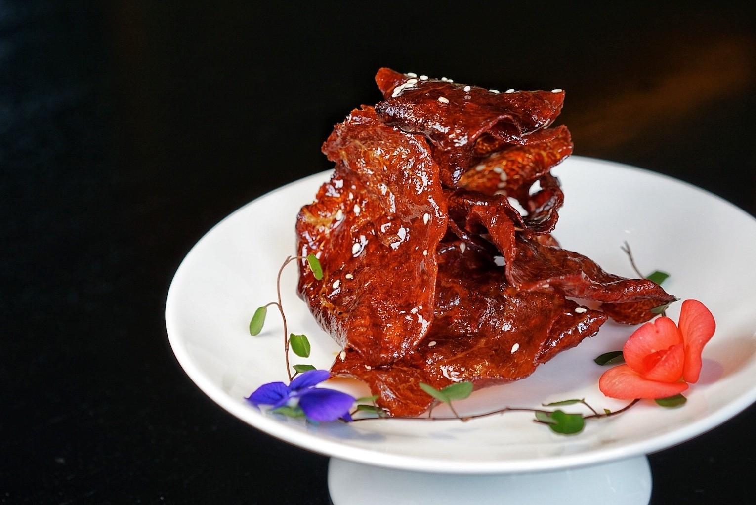 Taking a journey from Australia to Shanghai, the Crispy Air Dried Angus Beef (RMB128) arrives in time for a three-day air drying process before being coated in a sweet and sticky soya glaze with just a hint of Sichuan peppercorn. Crunchy, yet still retaining a noticeable chew, the beef stands out on its own sans accompaniments.