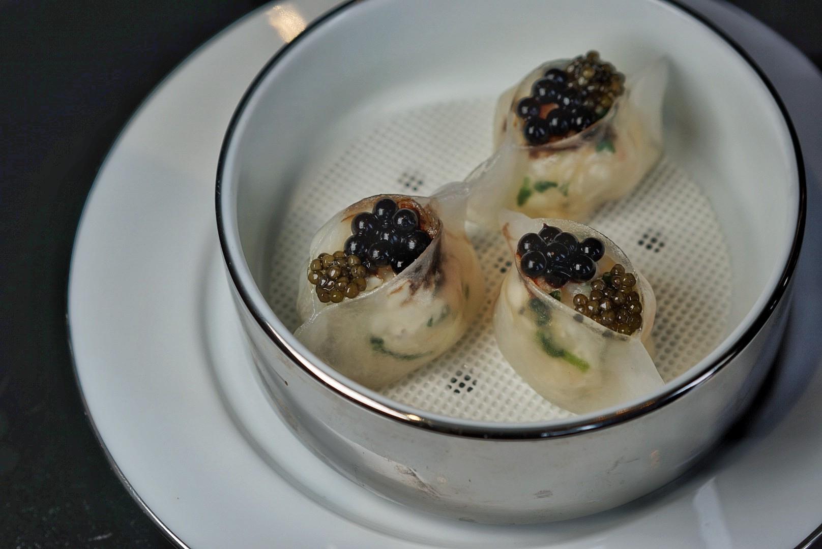 The Crabmeat Dumpling (RMB78) may seem run of the mill, but the glistening flying fish roe beads and vinegar pearls adorning the top make it anything but. Despite the dish’s name, you will find more than just crabmeat inside. Each dumpling is stuffed with cuttlefish and scallop too – a savory seafood bite covering everything from ocean brine to umami piscine.