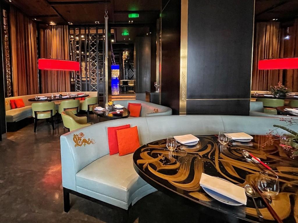 Decorative elements, like light marble-surrounded windows and wooden ornamental framing, mimicking traditional Chinese gardens, are on display throughout the main dining areas, combining both modern and authentic design features, Hakkasan’s underlying concept.