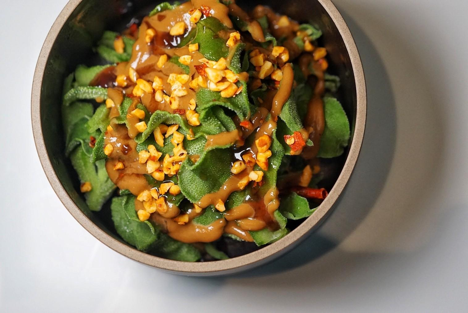The Iceplant Salad (RMB38) is crisp and refreshing, even when coated in sticky peanut and sesame, and with a lick of chili oil and crushed peanuts for more crunch.