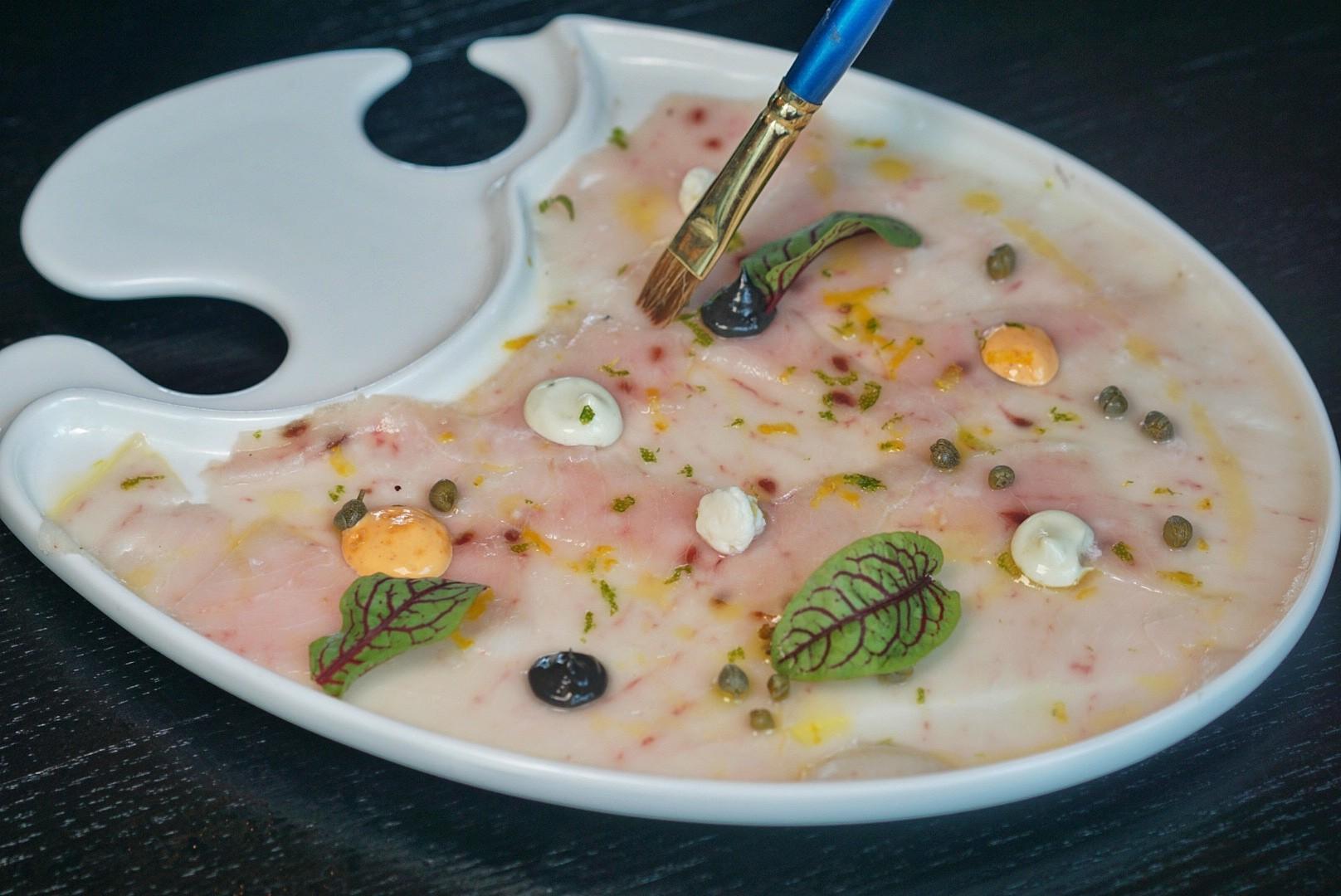 Guests can play artist for the day, painting with dollops of alternating wasabi mayo, mascarpone lemon cream and black garlic purée that sit atop the delicately thin Swordfish Carpaccio (RMB68).