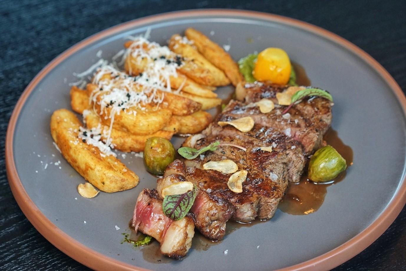 The Australian Wagyu Grass Fed Striploin (RMB398/350 grams) is juicy and tender, served with crispy truffle potato wedges and an Italian spin on chimichurri sauce – made with basil and garlic.