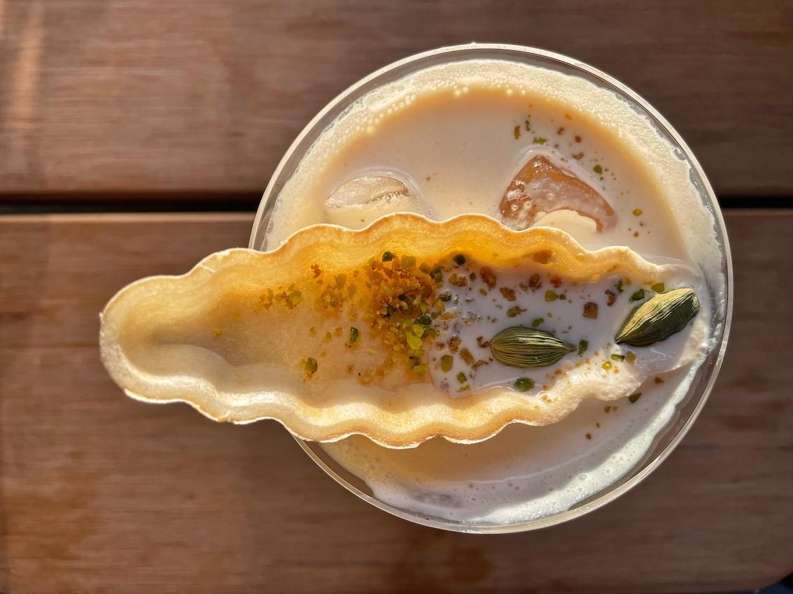 The Curry Colada (RMB95) is tart and creamy yet utterly transparent, with a blend of curry rum, coconut water, clarified milk, pineapple, lime and a dash of sea salt.
