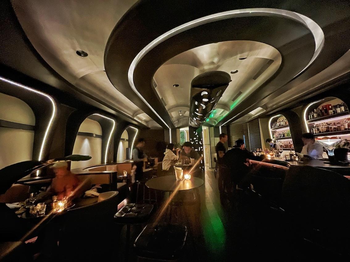 The back-lit bar is manned by 2-3 bartenders, each expertly pouring an array of everything from seasonally crafted cocktails to textbook classics. We witnessed the making of the most precisely balanced Vesper – visually proving the delicate cocktail making balance between art and science.