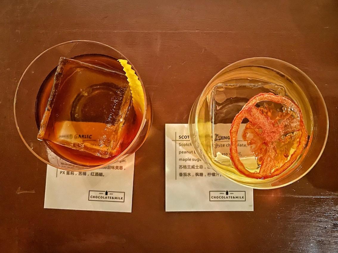 Chocolate & Milk has plenty of mixology chops as well. A rotovap and centrifuge are displayed proudly behind the bar, where they are tastefully employed in the making of the bar’s original creations. The cocktail menu — with drinks priced between RMB90-95 — is well balanced, unique and creative, featuring both molecular mixology and traditional Chinese ingredients.