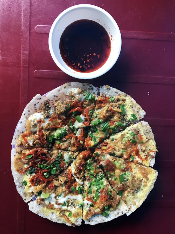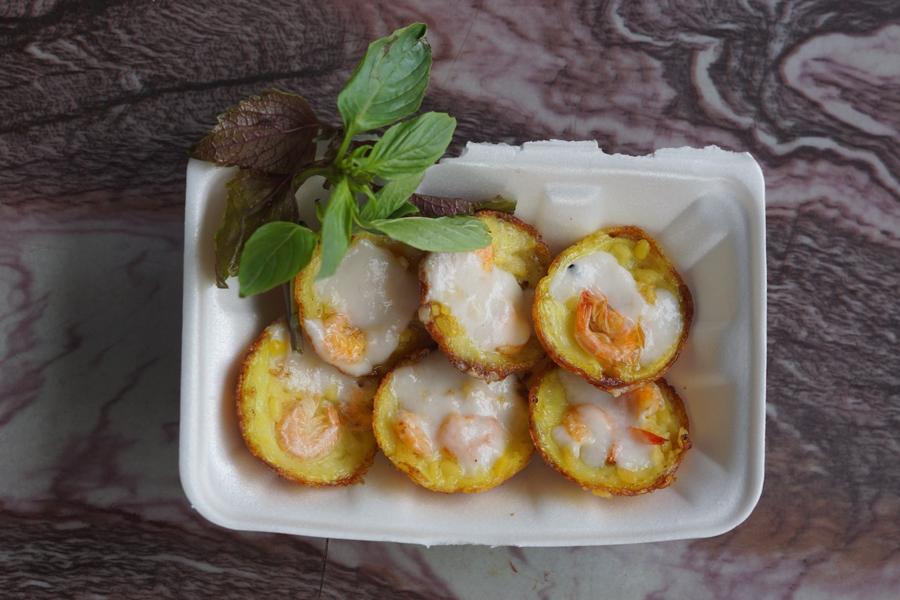 Banh Trang Nuong: Banh Trang Nuong (Vietnamese grilled rice paper) is often nicknamed "Vietnamese pizza" due to its round shape and diverse toppings, spanning beaten egg, minced pork, dried shrimp, pork floss, chopped scallions, chili, and/or fried shallots. The rice paper is grilled over open flame for a golden, crunchy finish. As a quick, inexpensive, and satisfying snack, this Đà Lạt street food has now made its way across Vietnam, especially popular amongst the younger generation.