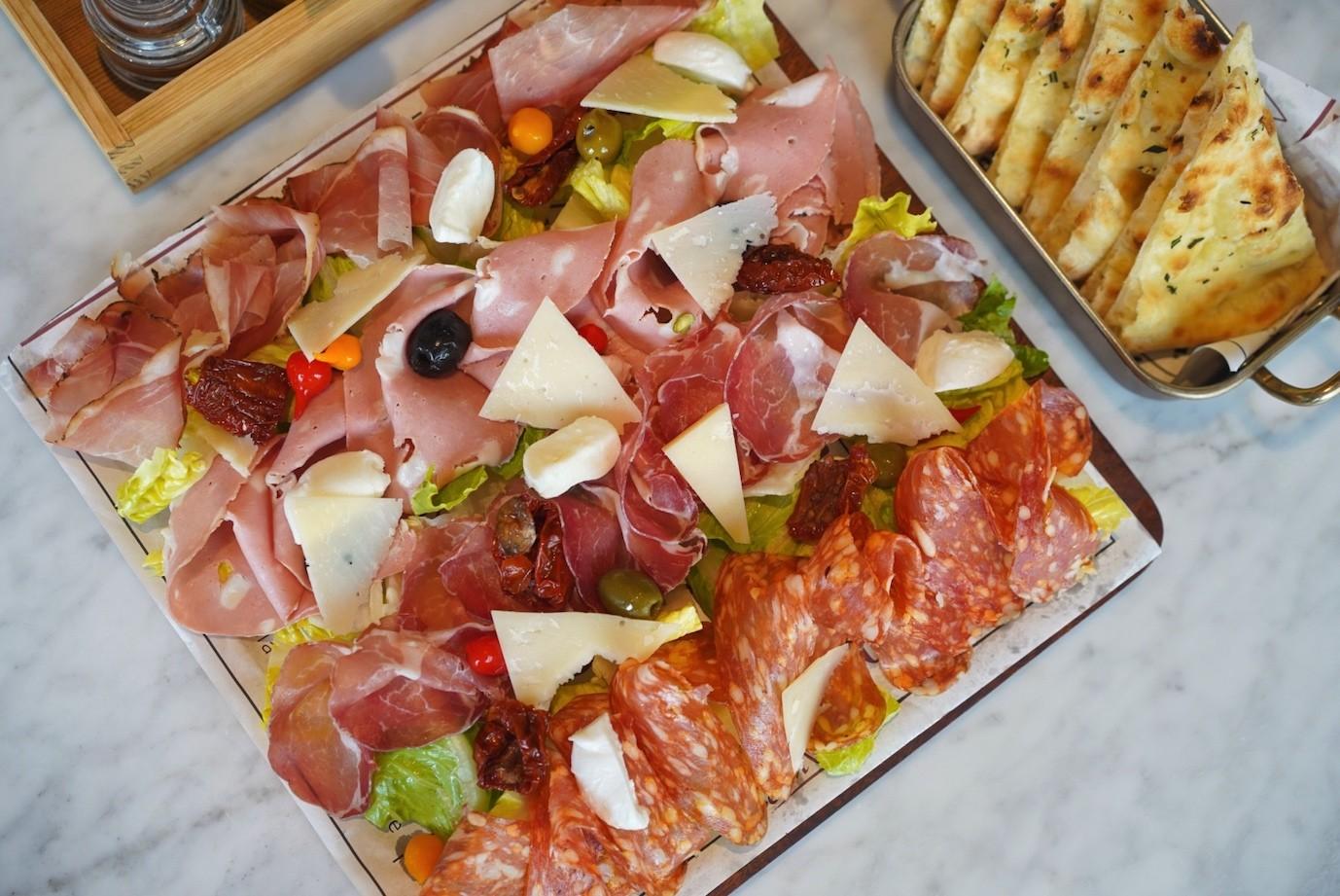 The all-day-dining menu starts out with a full selection of imported meats and cheeses, with the most extensive offering being the Piatto di Affettati Misti (RMB188) – a cold cut platter featuring speck (smoked pork shoulder), Bologna mortadella, coppa, spianata (a type of spicy, flattened salami), grana padano, cherry buffalo mozzarella, sundried tomatoes, olives, and the like.