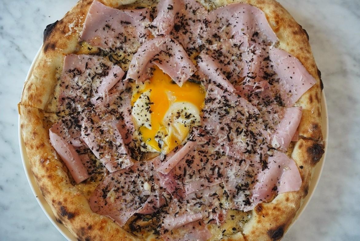 ... and Pizza Cotto e Tartufo Nero (RMB108/8”, RMB188/12”), topped with Yunnan black truffle, cooked culatello ham (the choicest part of cured pork most commonly found in the Emilia Romagna region of Italy), grated egg and mushroom, mozzarella cream, a truffle oil drizzle, and an ooey-gooey runny yolk that soaks into the doughy crust.
