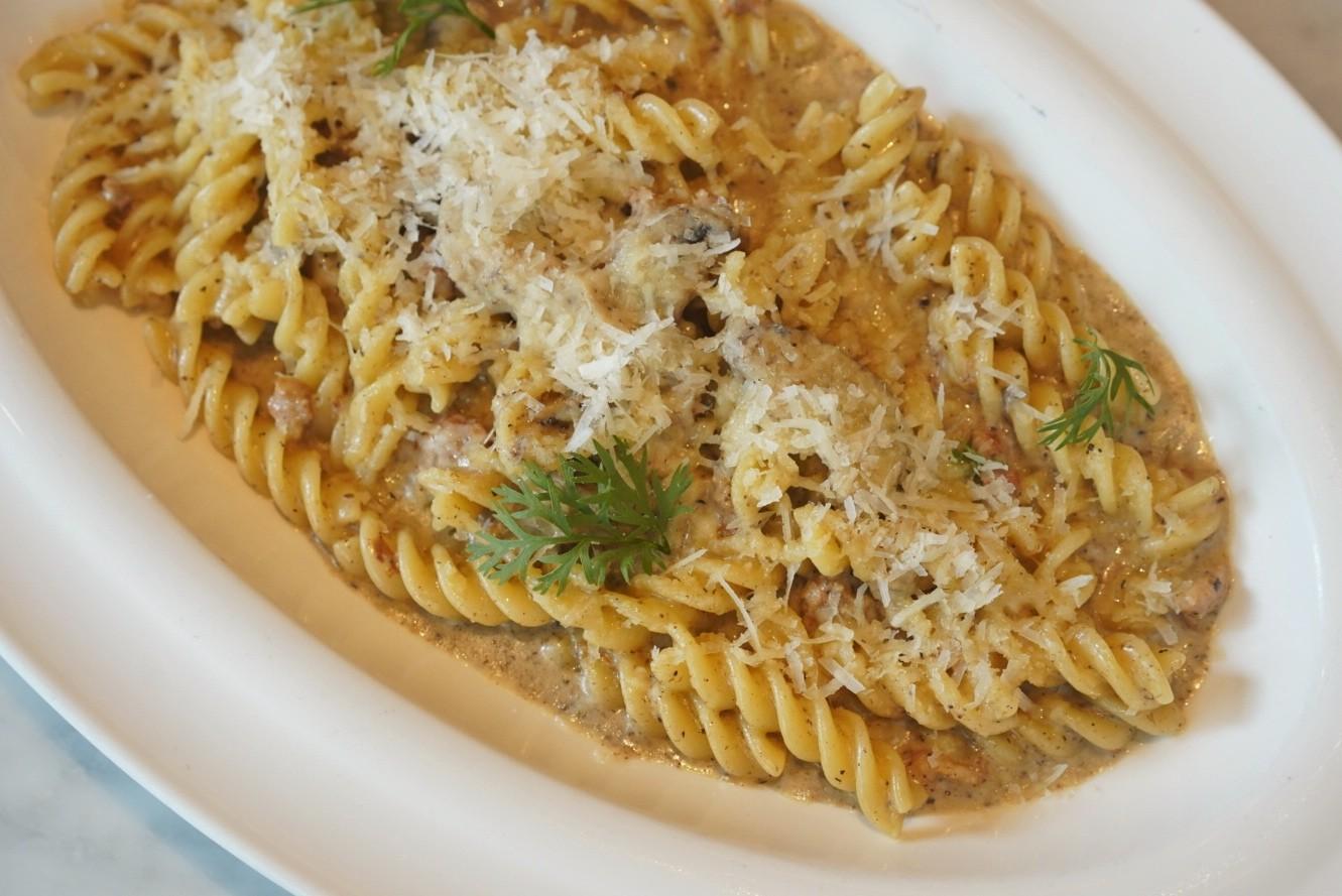 Twisted al dente Italian-imported Barilla Fusilli Tartufati (RMB99) is all about the corkscrewed pasta tossed with pork sausage in a mushroom and truffle cream sauce.