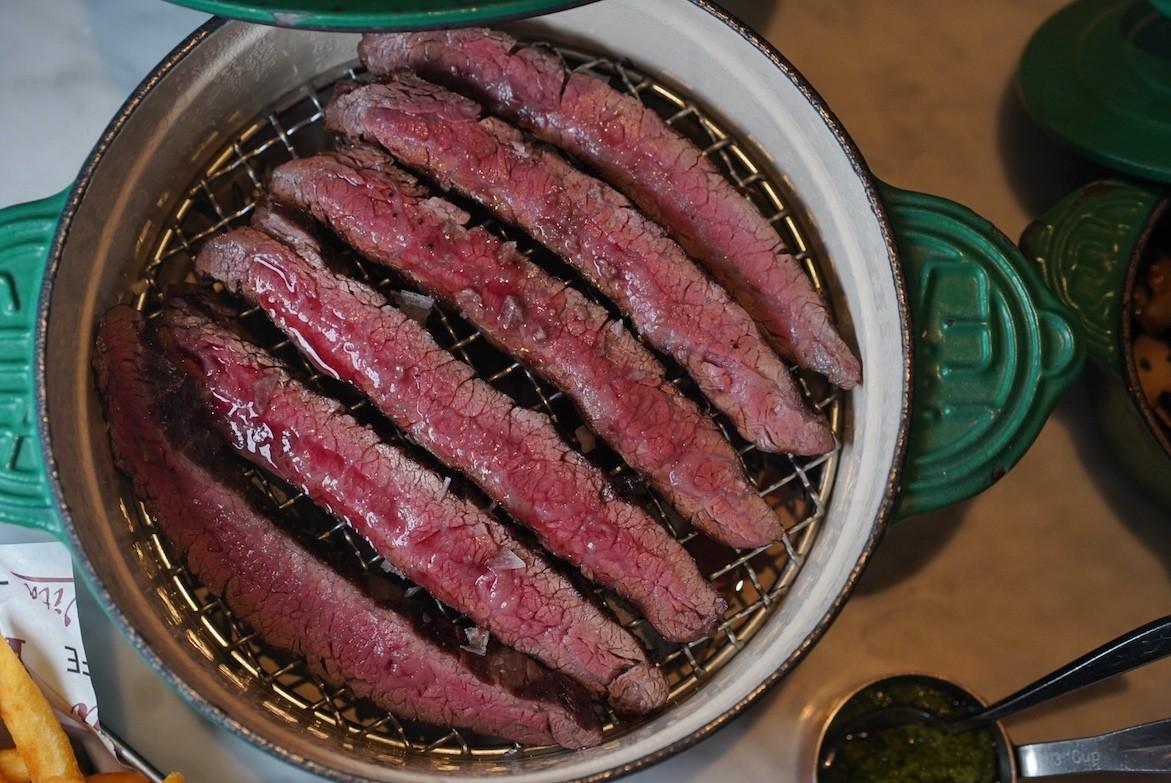 Marinated for 48 hours with chilis, herbs and a secret spice blend, the Pollo alla Diavola (RMB128/half, RMB188/whole) is then slow-cooked and roasted whole, plated above sautéed mushrooms and twice-fried French fries.