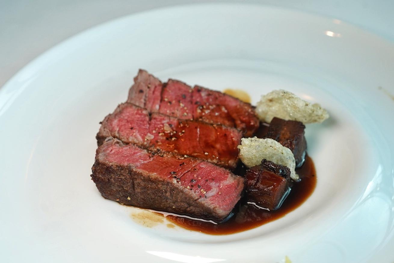 A staple on any tasting menu, the succulent, wood-grilled Angus Beef Tenderloin is anchored to the plate by an oyster and seaweed cream, flanked by seasonal mushrooms and a drizzle of beef jus.