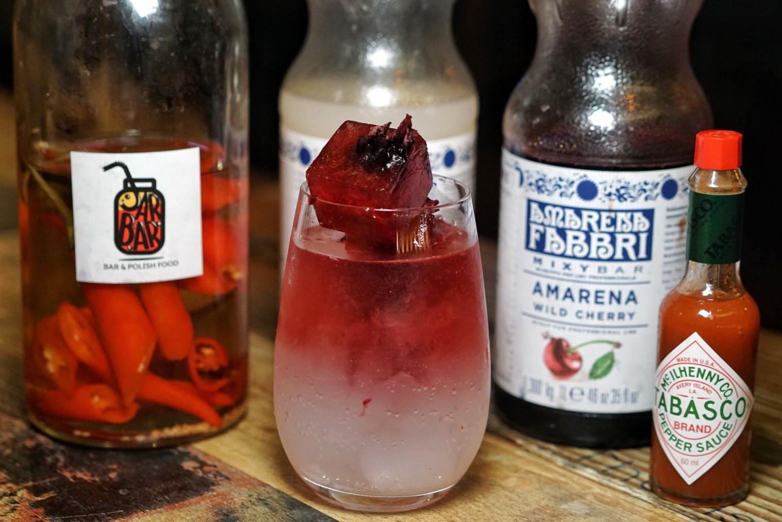 The cocktail that afforded Gosia a nomination in the Lady Amarena China 2022 competition is the Limbo Between Heaven & Hell (RMB75), a two-in-one drink featuring chili-infused vodka mixed with Tabasco and wild cherry Amarena syrup floating atop an almond soda blend on the bottom.