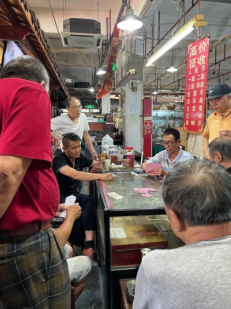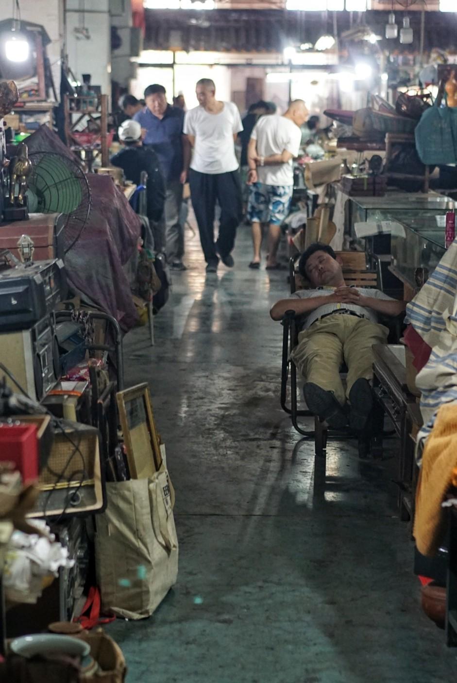The building smells of sweat, dust, cigarette ash and a former – now forgotten – version of Shanghai that echoes through the walls as friendly haggling in a twisted, bouncy Shanghainese dialect. People come and go, eat and sleep, smoke, laugh and play mahjong deep within the rows of scattered debris, with no concept of time or the outside world. Plum rains or streaming sunshine, frigid cold or radiating heat, the market is open every day.