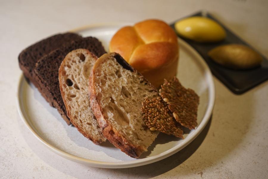 Each meal begins with a serving of Russian-style Breads. There's hearty borodinsky (a Russian sourdough rye black bread made with malt and laced with cumin), traditional sourdough, brioche, and sunflower and flax seed chips. But the real star is the butter, particularly the quenelle of "leftover bread" miso butter that is funky, nutty, and velvety – a true flavor bomb.