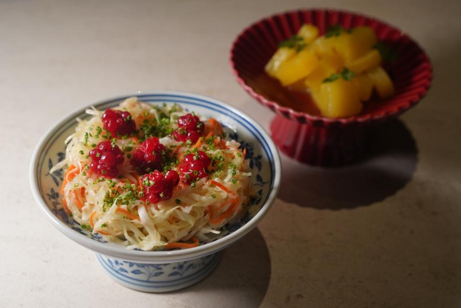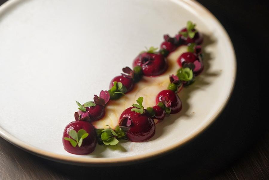 Next, the menu leans into Fermentations, like the Fermented Cabbage (RMB48) with soaked cowberries (a traditional Russian berry with nuances of cranberry tartness and lingonberry juiciness). Using green apple juice and a 2% salt ratio, the cabbage is lacto-fermented and finished with a hit of sunflower oil.