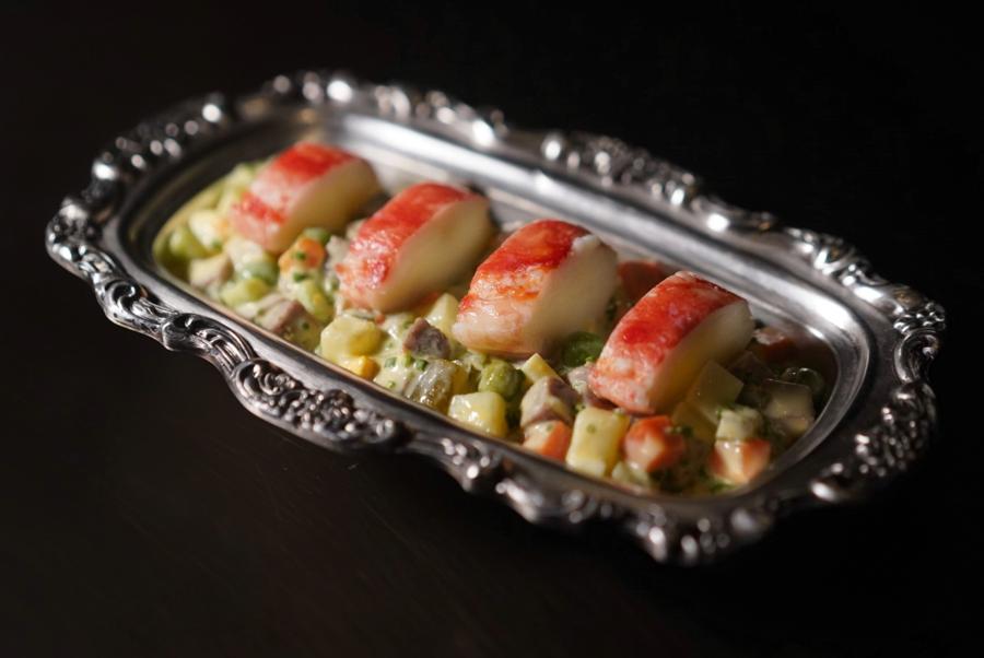 Olivier Salad (RMB215) Baked vegetables, king crab, slow-cooked beef tongue