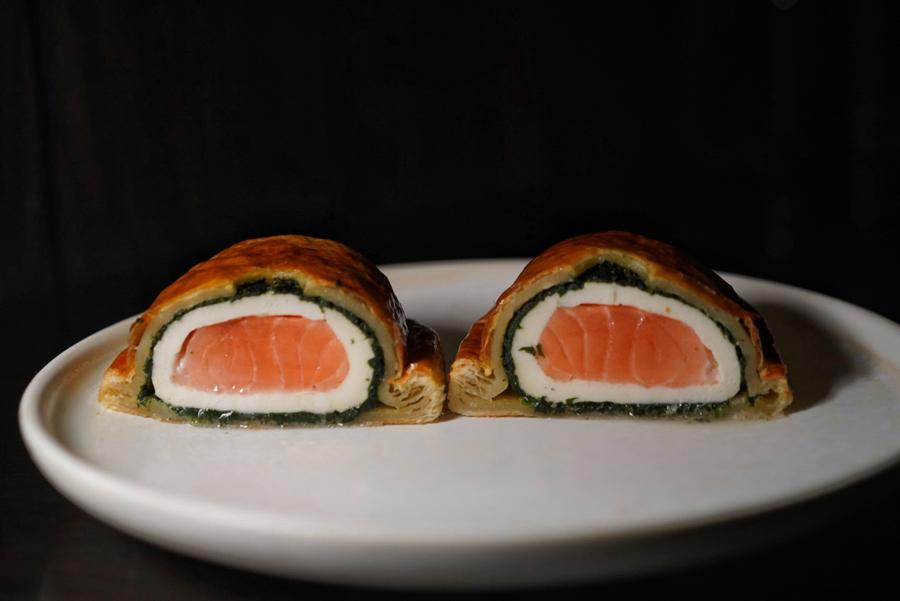 Salmon Rasstegai (RMB325) – Scallop, spinach, fish stock