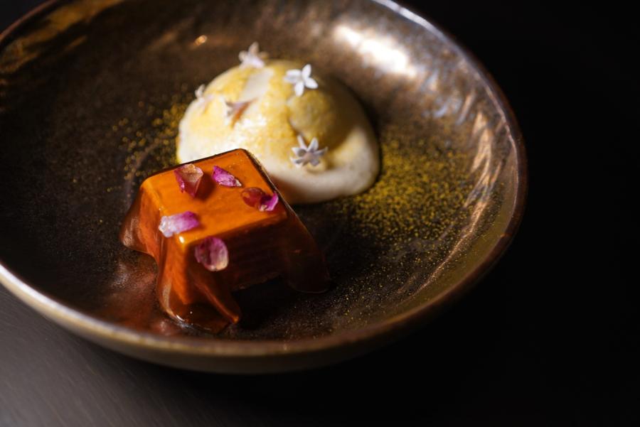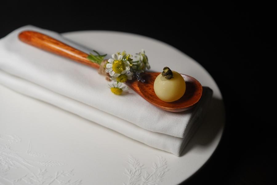 For dessert, Honey Varieties is a sneak peek at what's to come as part of the set menu that will launch in mid-May. Showcasing honey in a myriad of manners, there's white chocolate honey candy that pops with an explosion of liquid fermented honey and Sichuan peppercorn, it's lip-tingling effect acting as a nod to a bee's sting. Then, there's rose jelly-topped honey cake made of buckwheat honey biscuits and mountain honey-laced cream stratum. Finally, a scoop of chamomile ice cream sits below a cloud of citrus espuma dusted in bee pollen and sprayed with Elderflower mist.