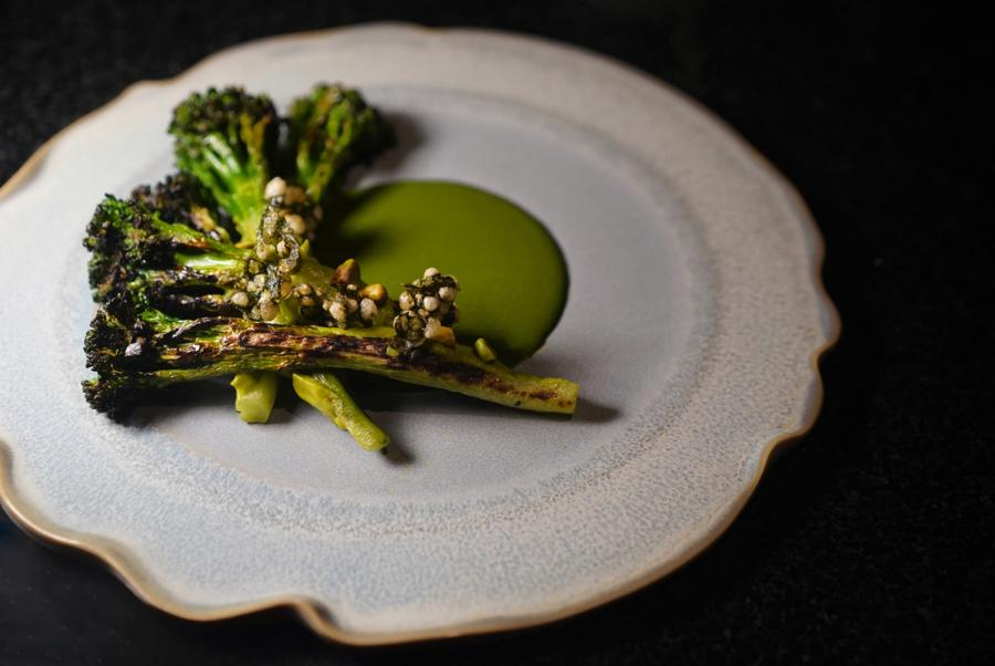 Grilled Broccolini – Anchovy mint sauce, pistachios, nori chips