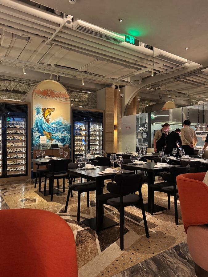 Opposite Kirillitsa (and connected via a 40-person terrace overlooking the Bund's skyline) is Fathom, a seafood-forward concept that fuses both Russian and Asian influences. The name is a reference to the unit of length (1.8 meters) to measure depth of water. And each menu item indicates the number of fathoms down said sea creature was sourced from. Expect the highest quality seafood, like Kamchatka crab, Antarctic tooth fish, Russian pike roe, and – get this – the largest selection of caviar and champagne in the entire country.
