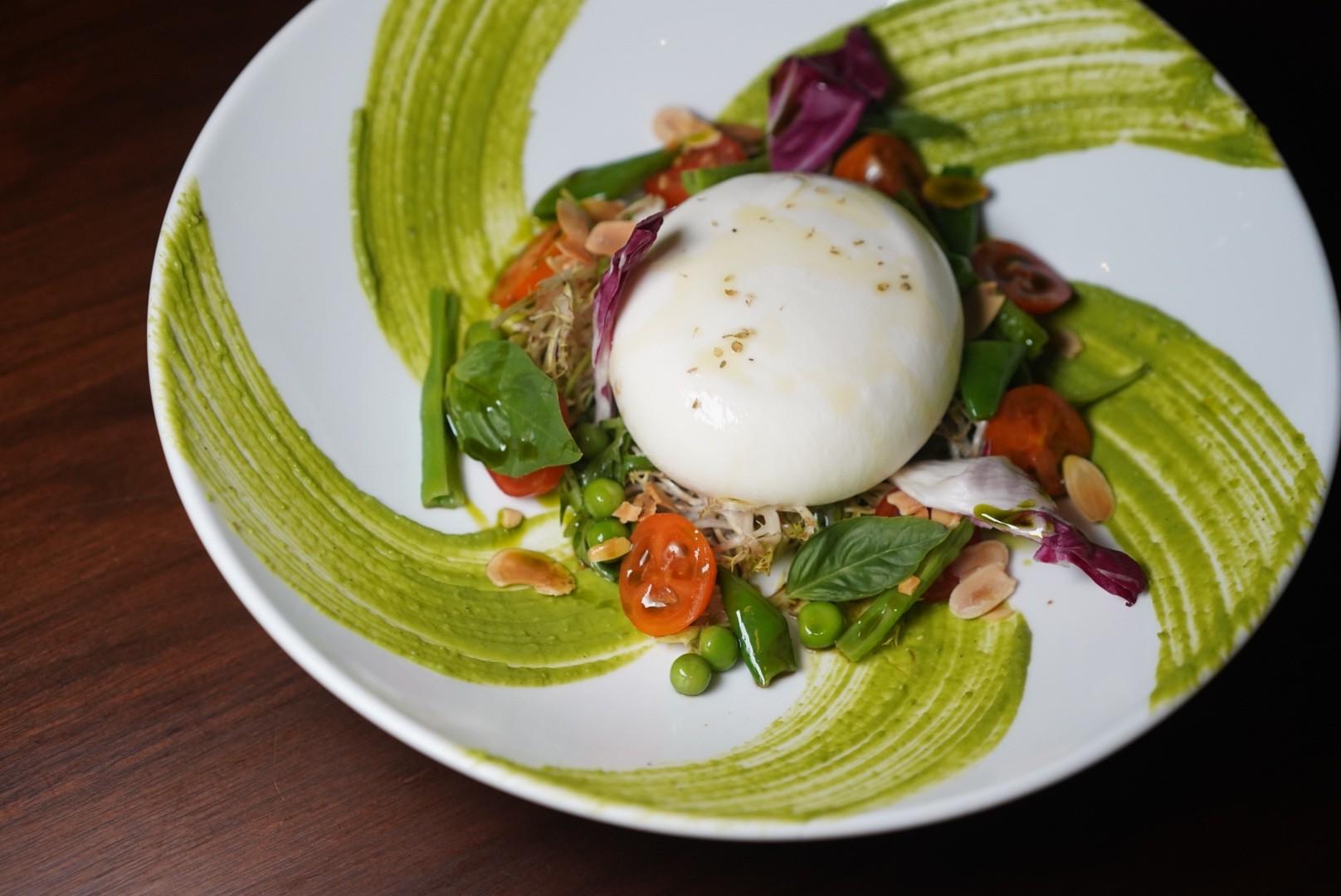 The delicate tastes of the season are at the forefront of the Burrata Salad (RM188), an elevated take on a caprese with a plump fresh burrata atop balsamic-glazed frisée greens, spring peas, cherry tomatoes, radicchio, toasted almonds and fresh basil.