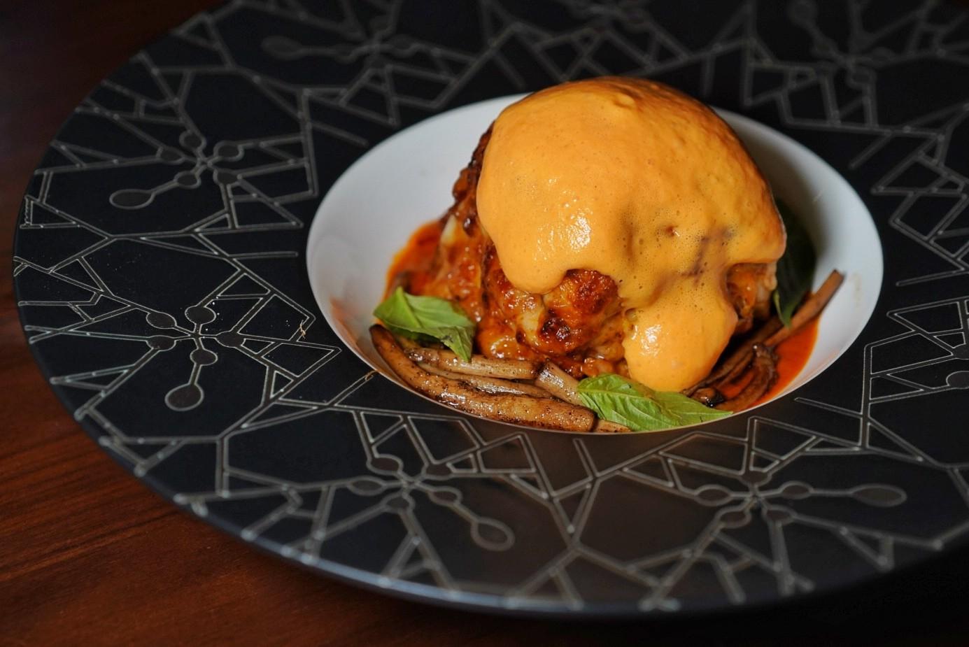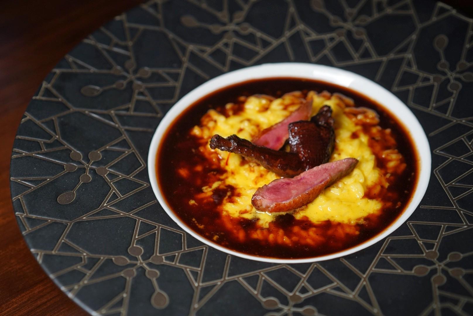 Steeped in a Shanghinese tea egg broth, expertly al dente saffron risotto is adorned with pigeon two ways – braised leg and seared breast – as the Saffron Risotto with Five Spice Pigeon (RMBB188).